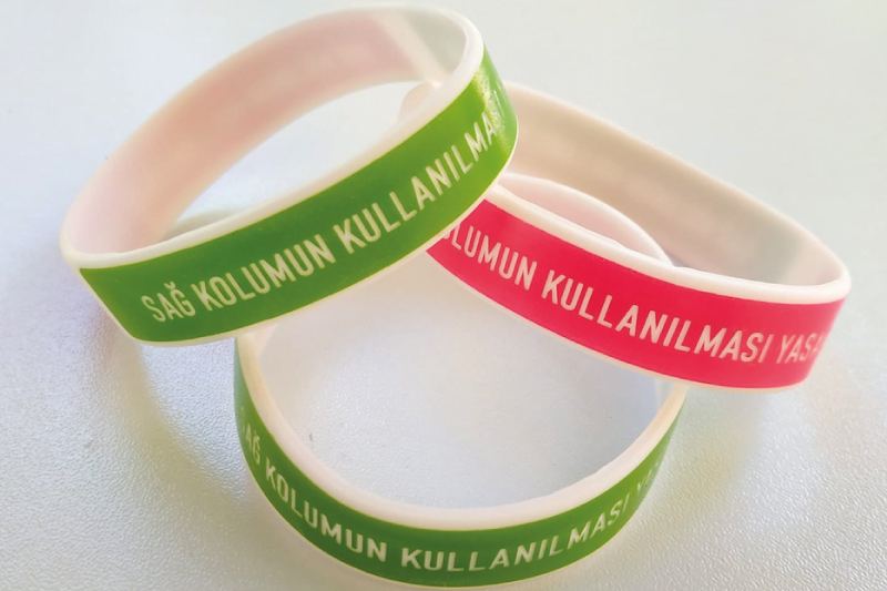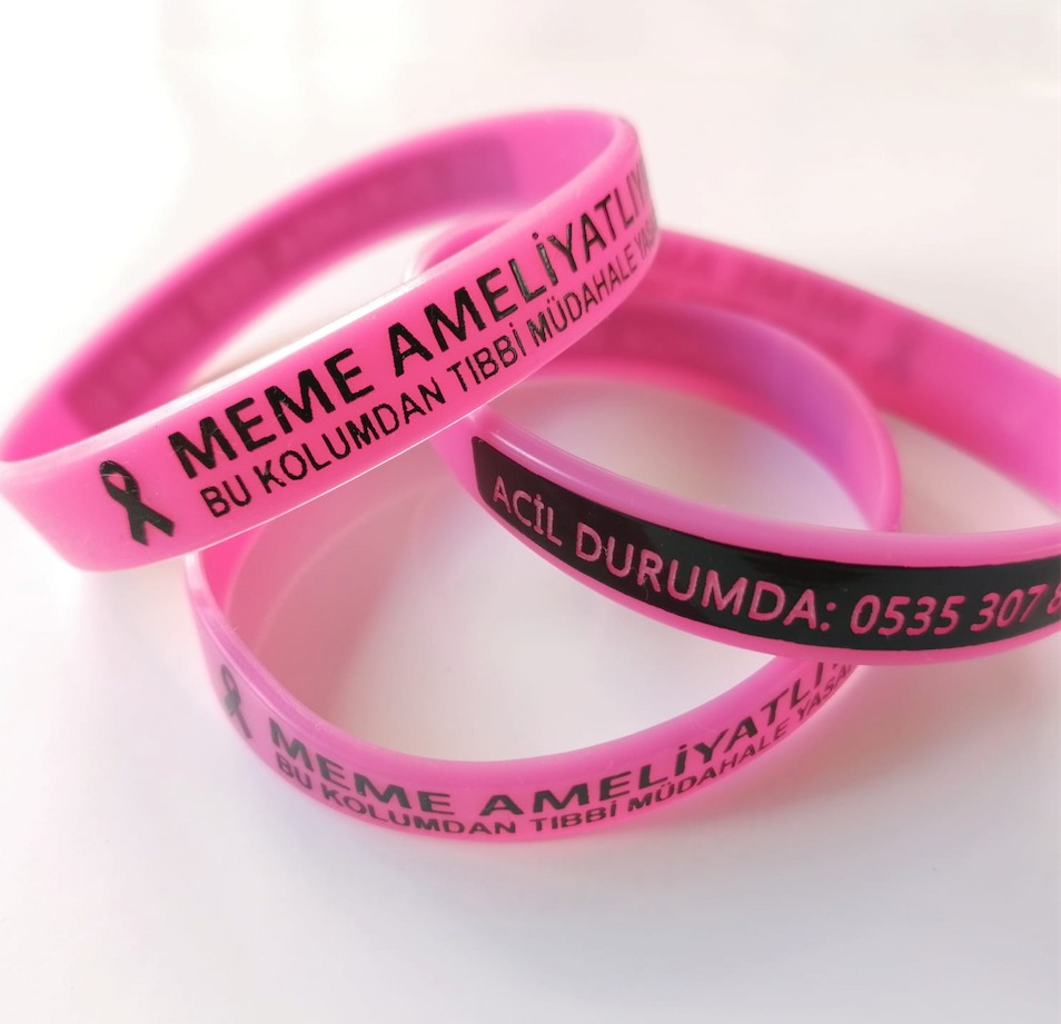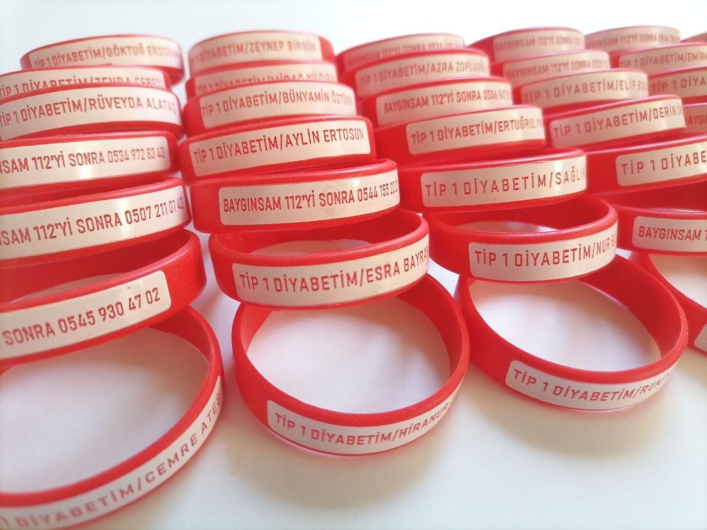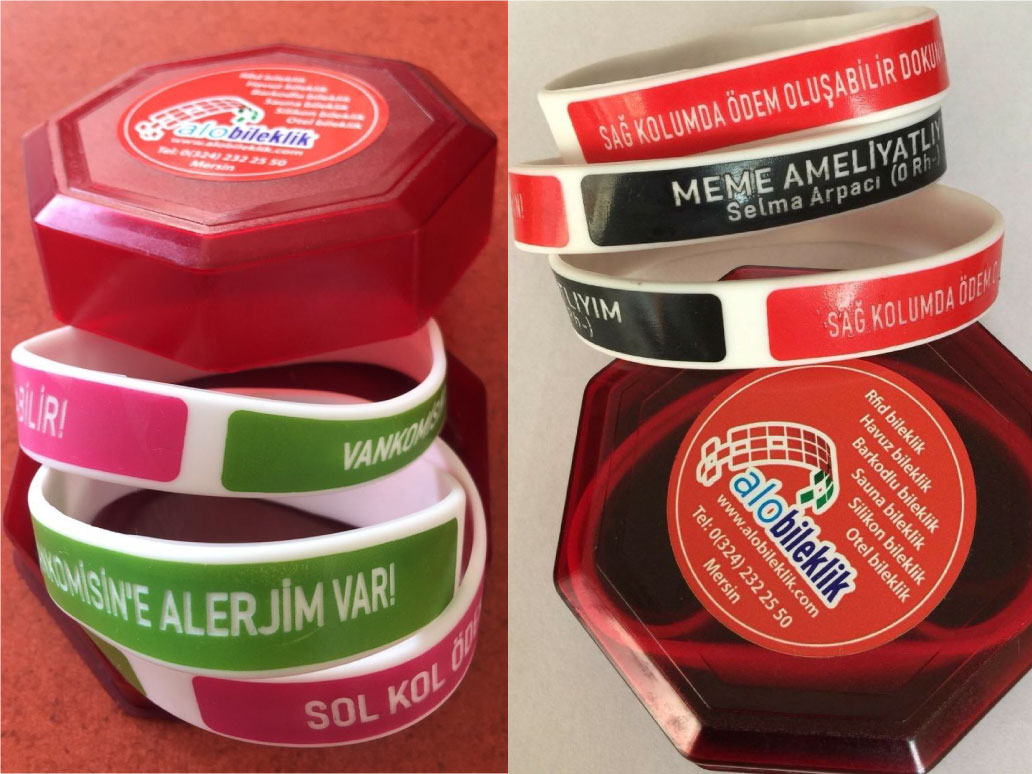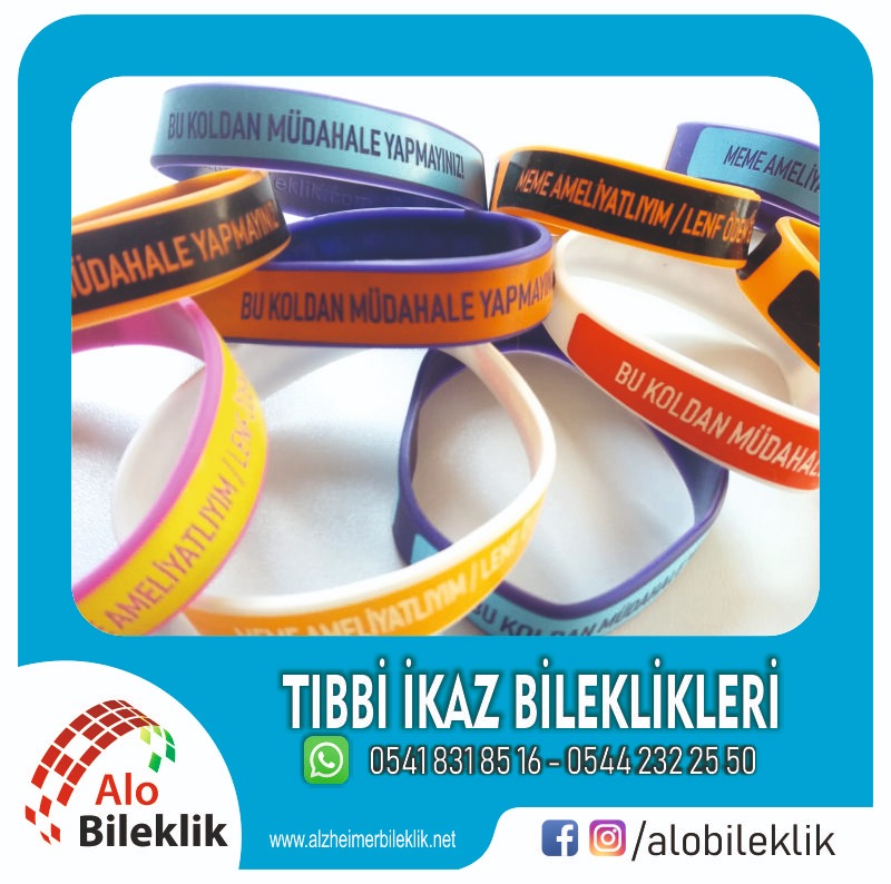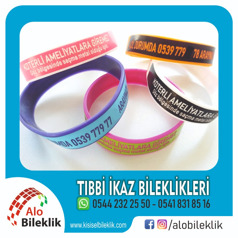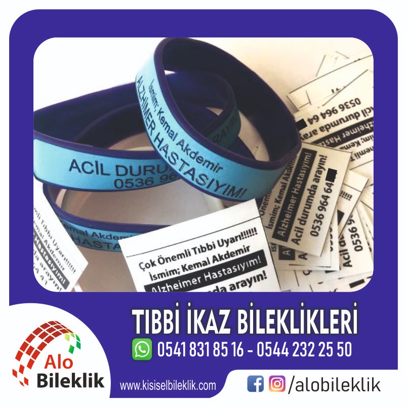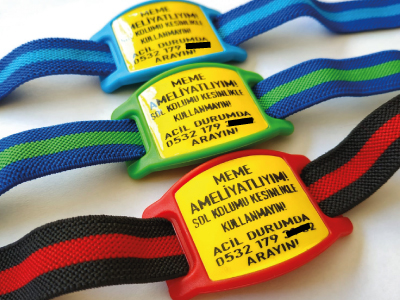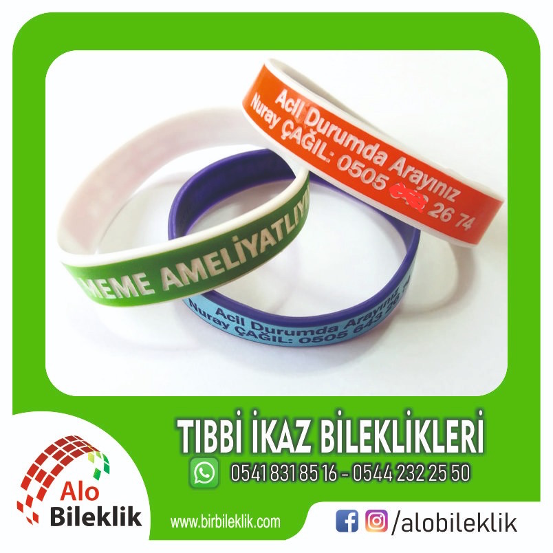İstenilen bilgi ve acil durum telefonu ile baskılı tıbbi ikaz bileklikleri üretmekteyiz.